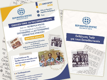 Εκδήλωση Τιμής για τους Εκπαιδευτικούς από την Περιφέρεια Κρήτης Η Περιφέρεια Κρήτης, σε συνεργασία με τις Διευθύνσεις Πρωτοβάθμιας και Δευτεροβάθμιας Εκπαίδευσης Ηρακλείου και τους Συλλόγους[…]