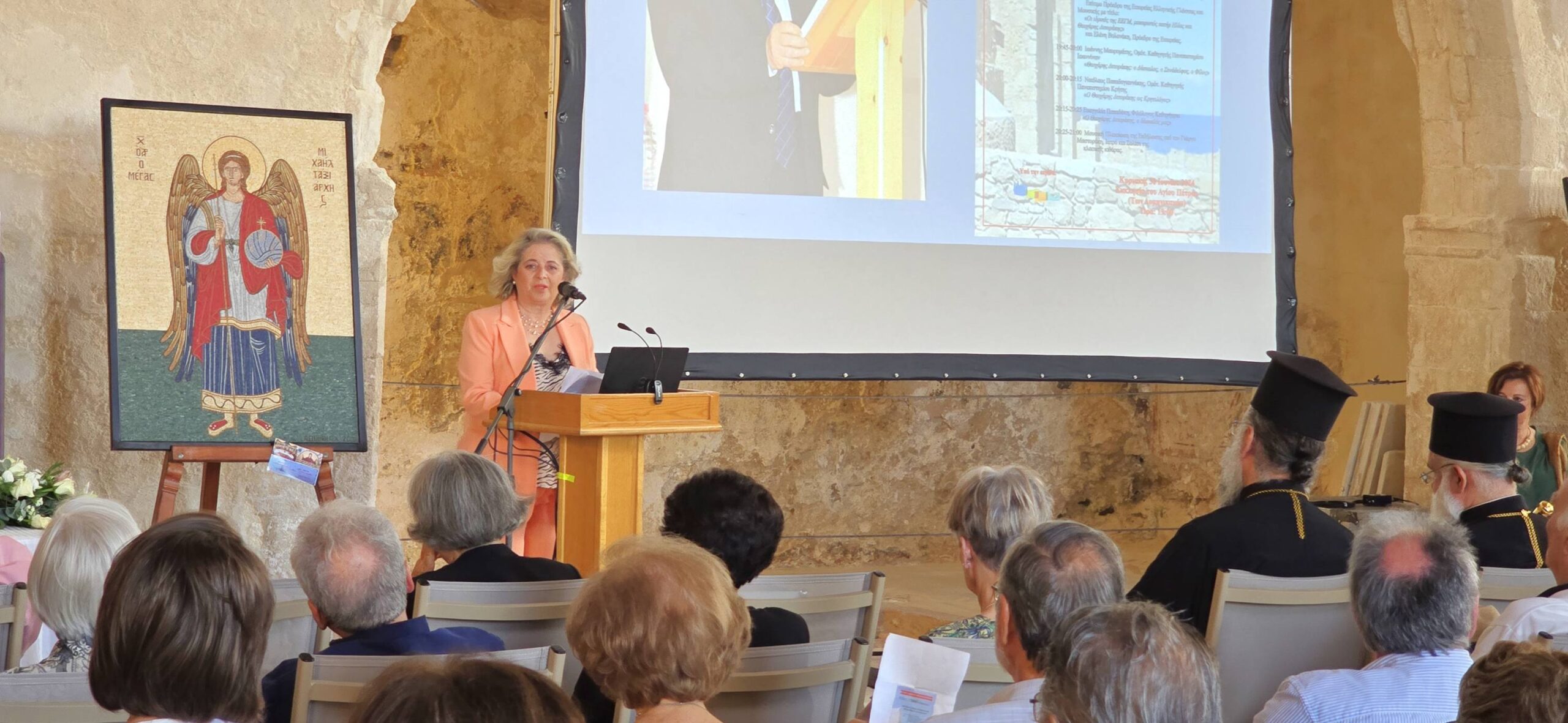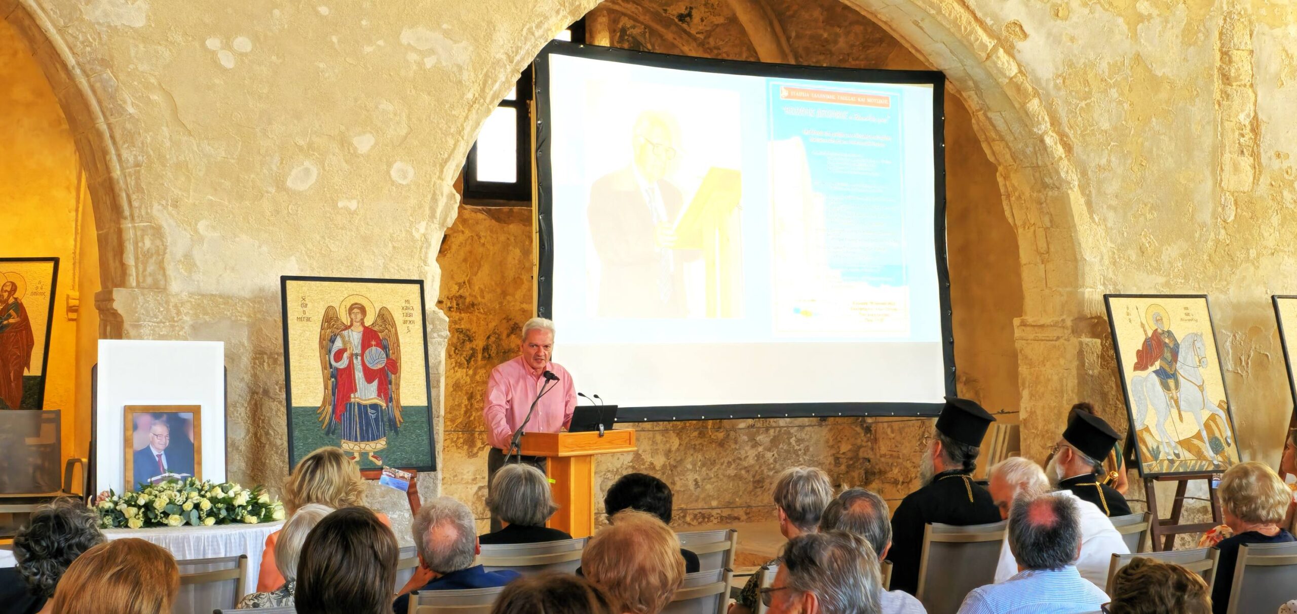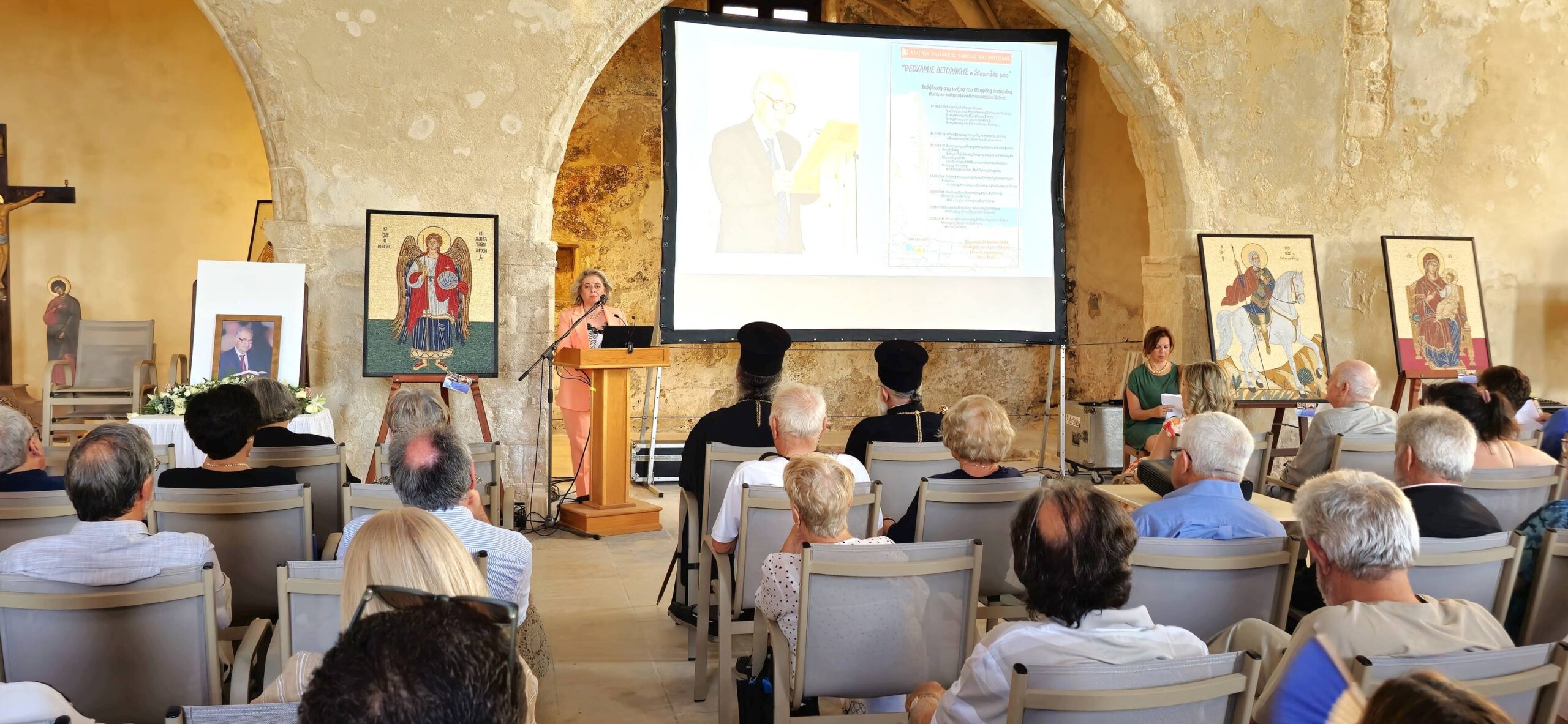 Είναι μεγάλη τιμή για μένα που, εκπροσωπώντας τον περιφερειάρχη Κρήτης κ. Σταύρο Αρναουτάκη παρευρίσκομαι και απευθύνω χαιρετισμό εκ μέρους του σ’ αυτήν την εκδήλωση που γίνεται για να τιμηθεί η μνήμη του διαπρεπούς επιστήμονα, ιστορικού, βυζαντινολόγου και κρητολόγου, του μακαριστού Θεοχάρη Δετοράκη.
