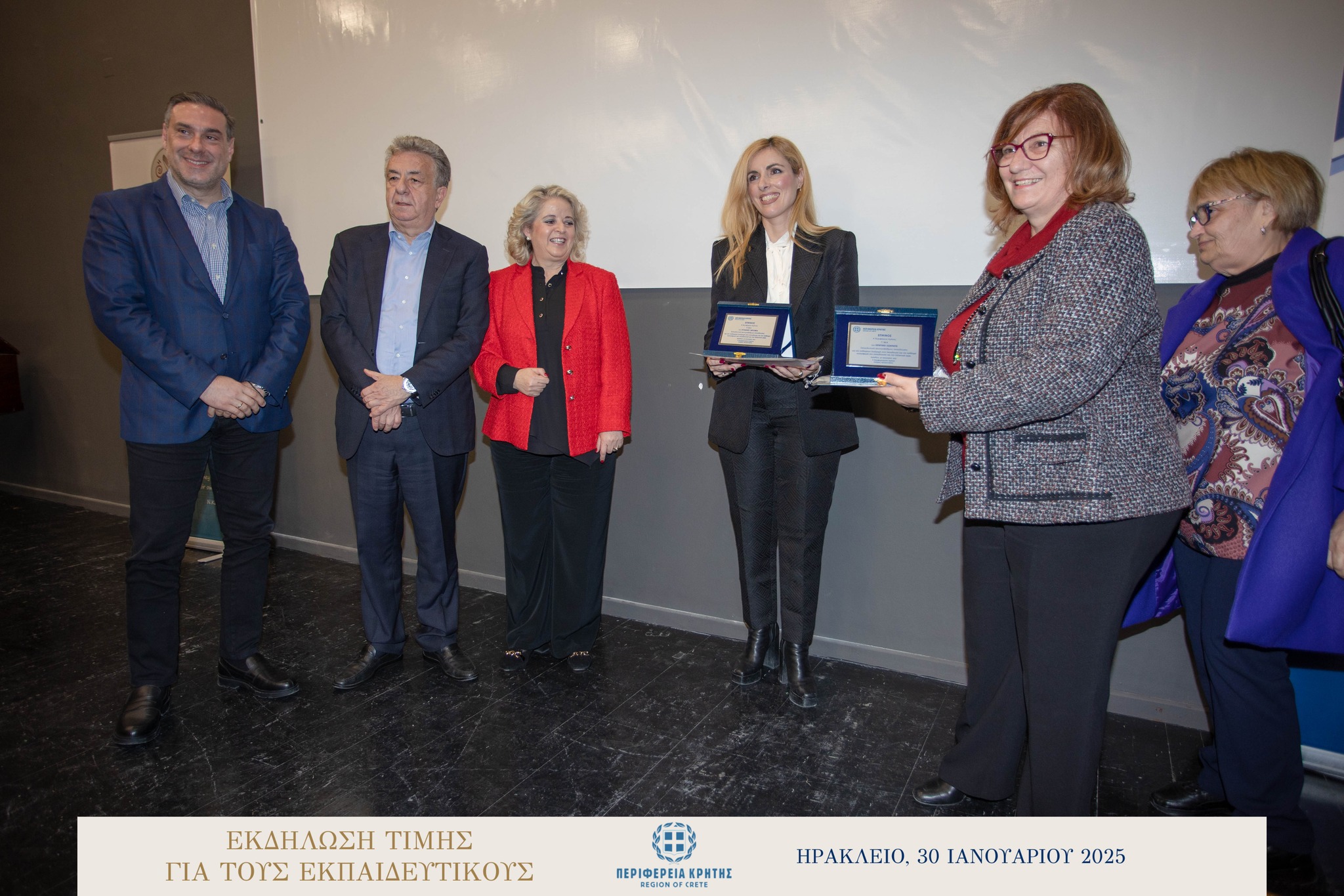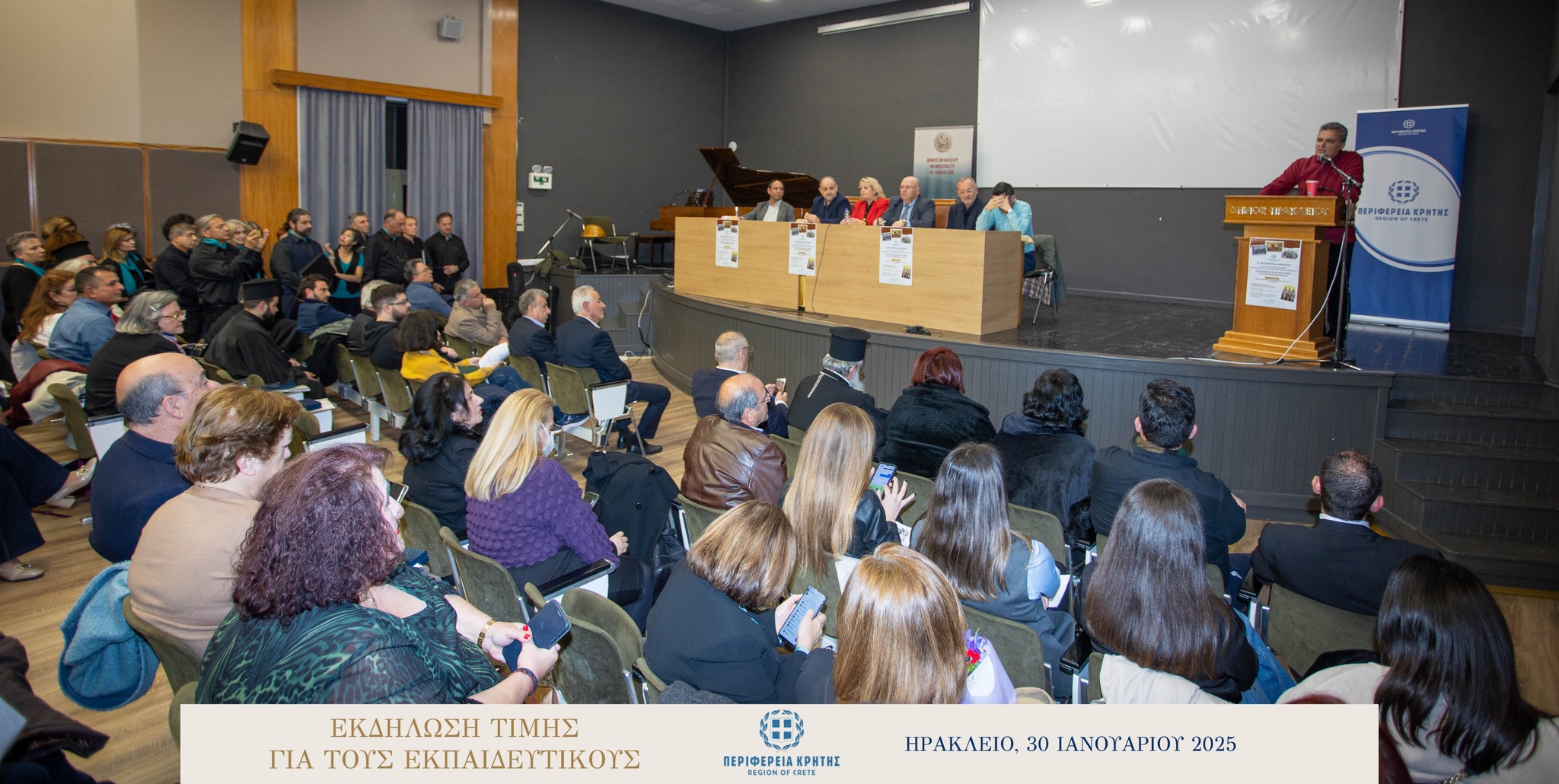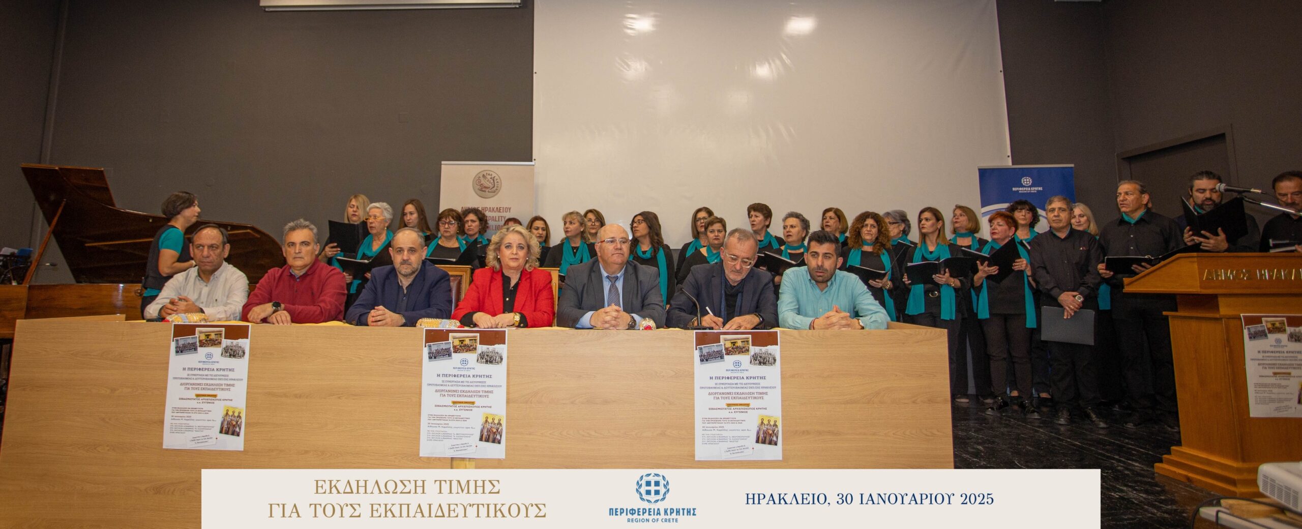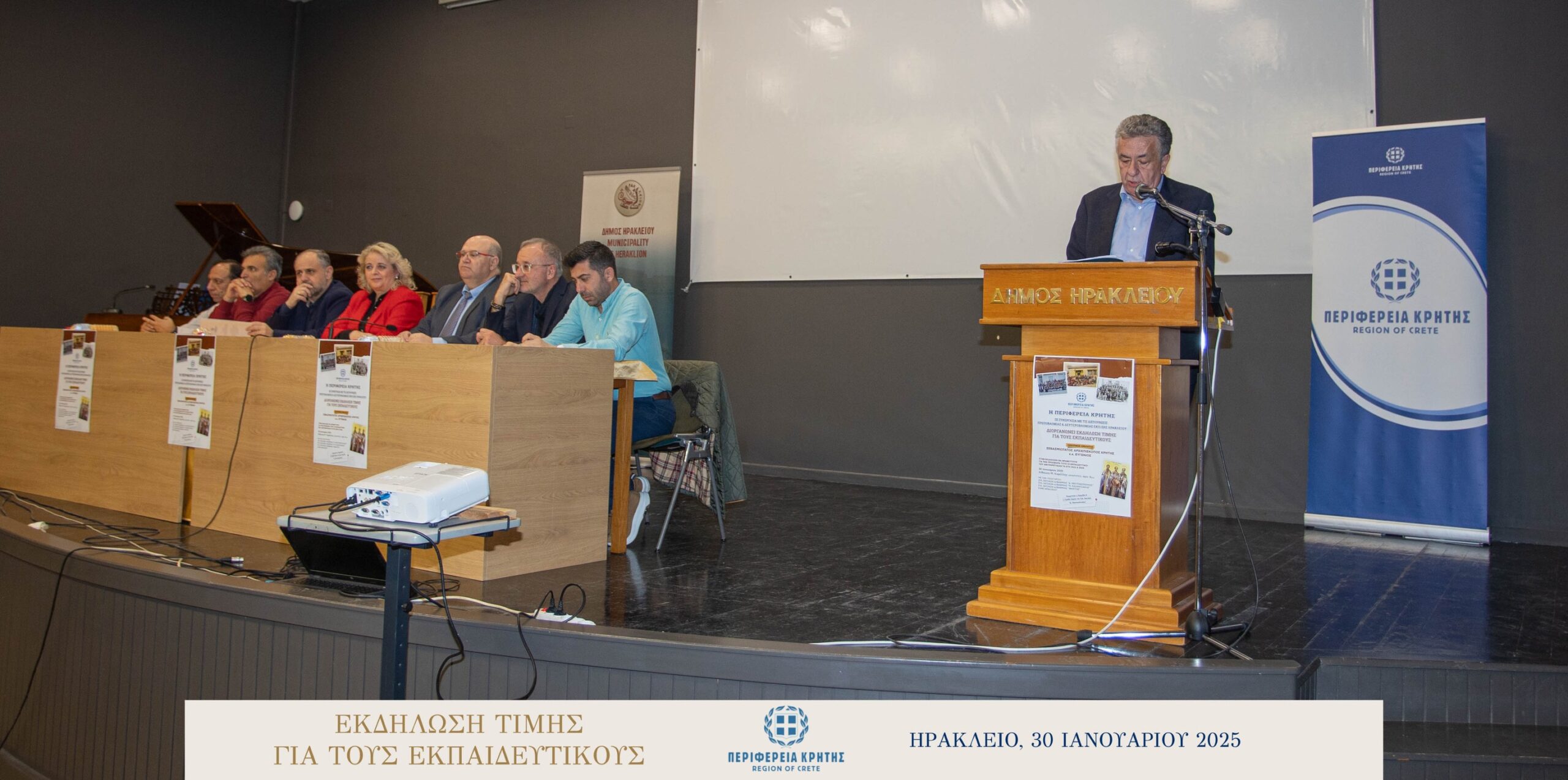 Με μεγάλη επιτυχία και σε κλίμα ιδιαίτερης χαράς και συγκίνησης πραγματοποιήθηκε την Πέμπτη 30 Ιανουαρίου 2025 στην αίθουσα «Μανώλης Καρέλλης» του Δήμου Ηρακλείου η τιμητική εκδήλωση για τους αφυπηρετήσαντες εκπαιδευτικούς των ετών 2023 και 2024 της Πρωτοβάθμιας και της Δευτεροβάθμιας εκπαίδευσης Ηρακλείου, ως ένδειξη ευγνωμοσύνης για την πολυετή προσφορά τους στην εκπαίδευση.