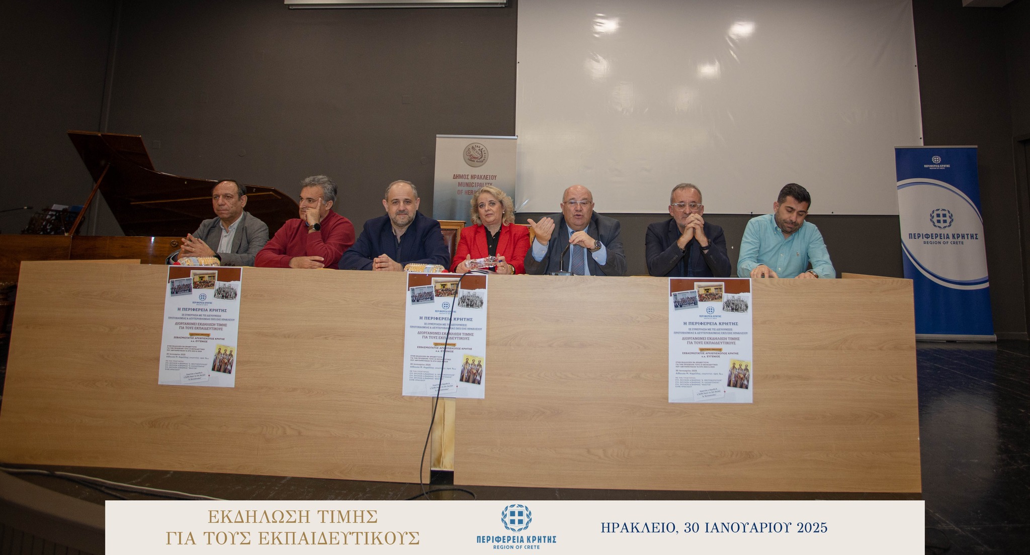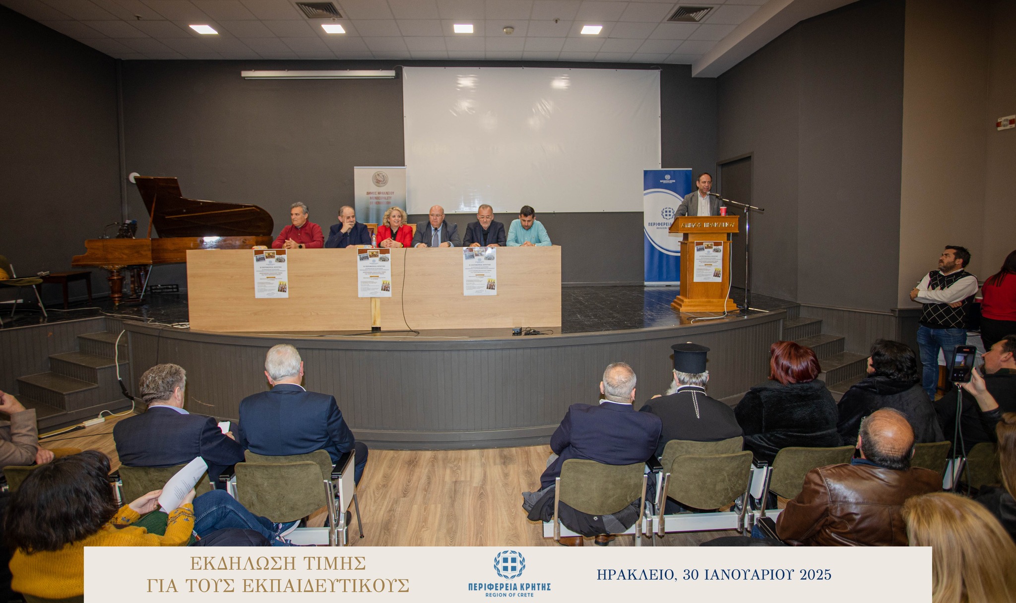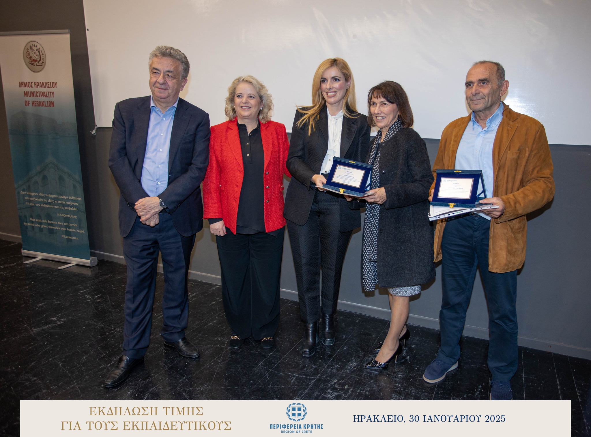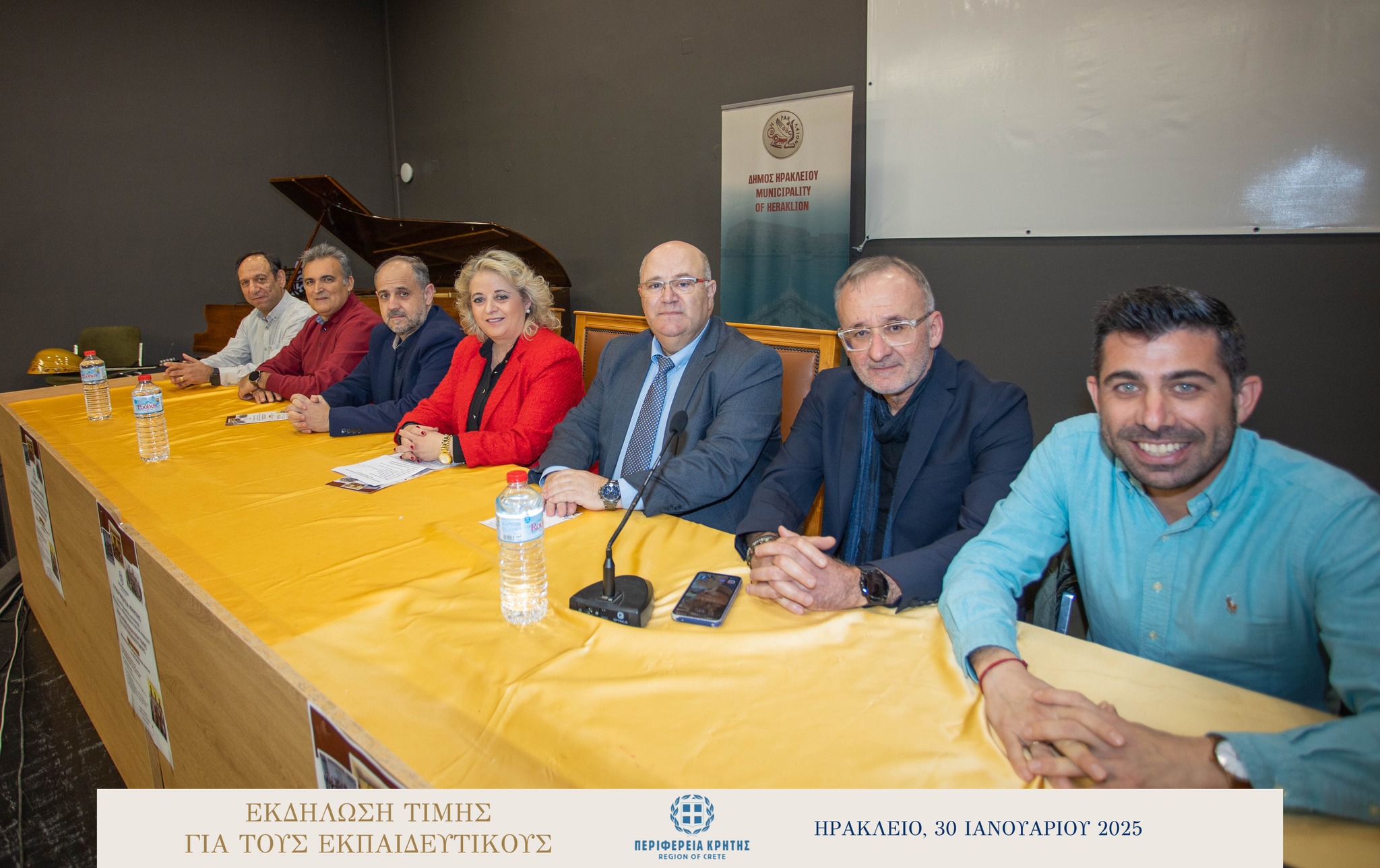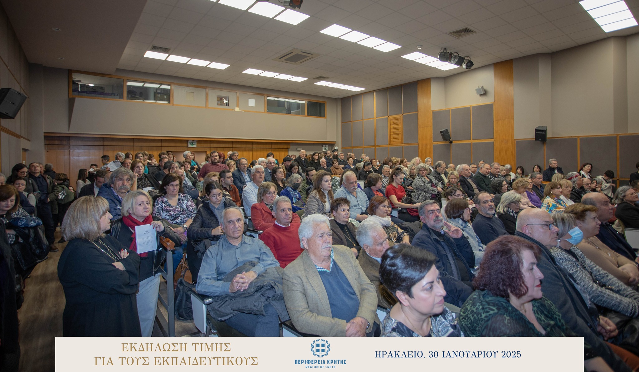 Με μεγάλη επιτυχία και σε κλίμα ιδιαίτερης χαράς και συγκίνησης πραγματοποιήθηκε την Πέμπτη 30 Ιανουαρίου 2025 στην αίθουσα «Μανώλης Καρέλλης» του Δήμου Ηρακλείου η τιμητική εκδήλωση για τους αφυπηρετήσαντες εκπαιδευτικούς των ετών 2023 και 2024 της Πρωτοβάθμιας και της Δευτεροβάθμιας εκπαίδευσης Ηρακλείου, ως ένδειξη ευγνωμοσύνης για την πολυετή προσφορά τους στην εκπαίδευση.