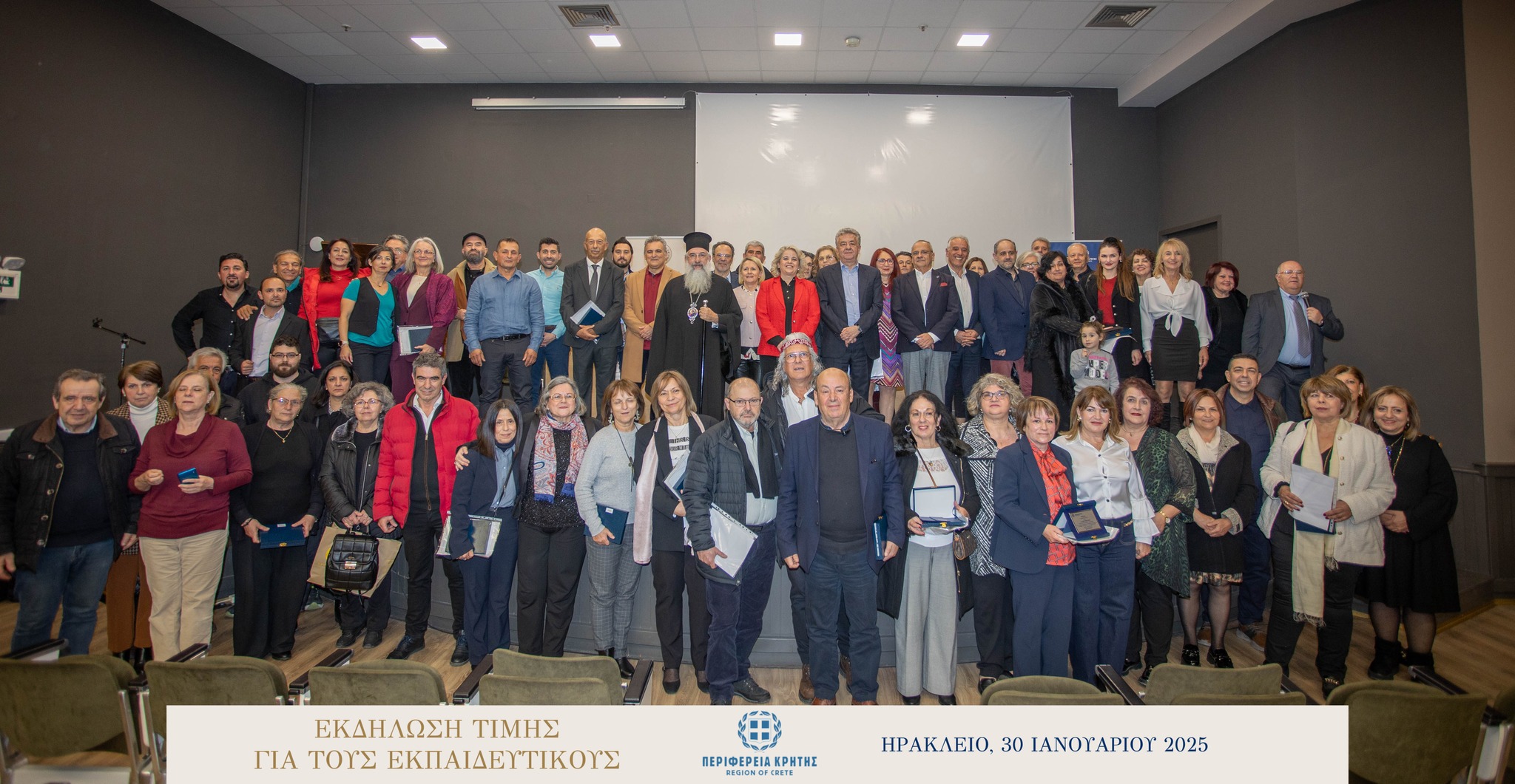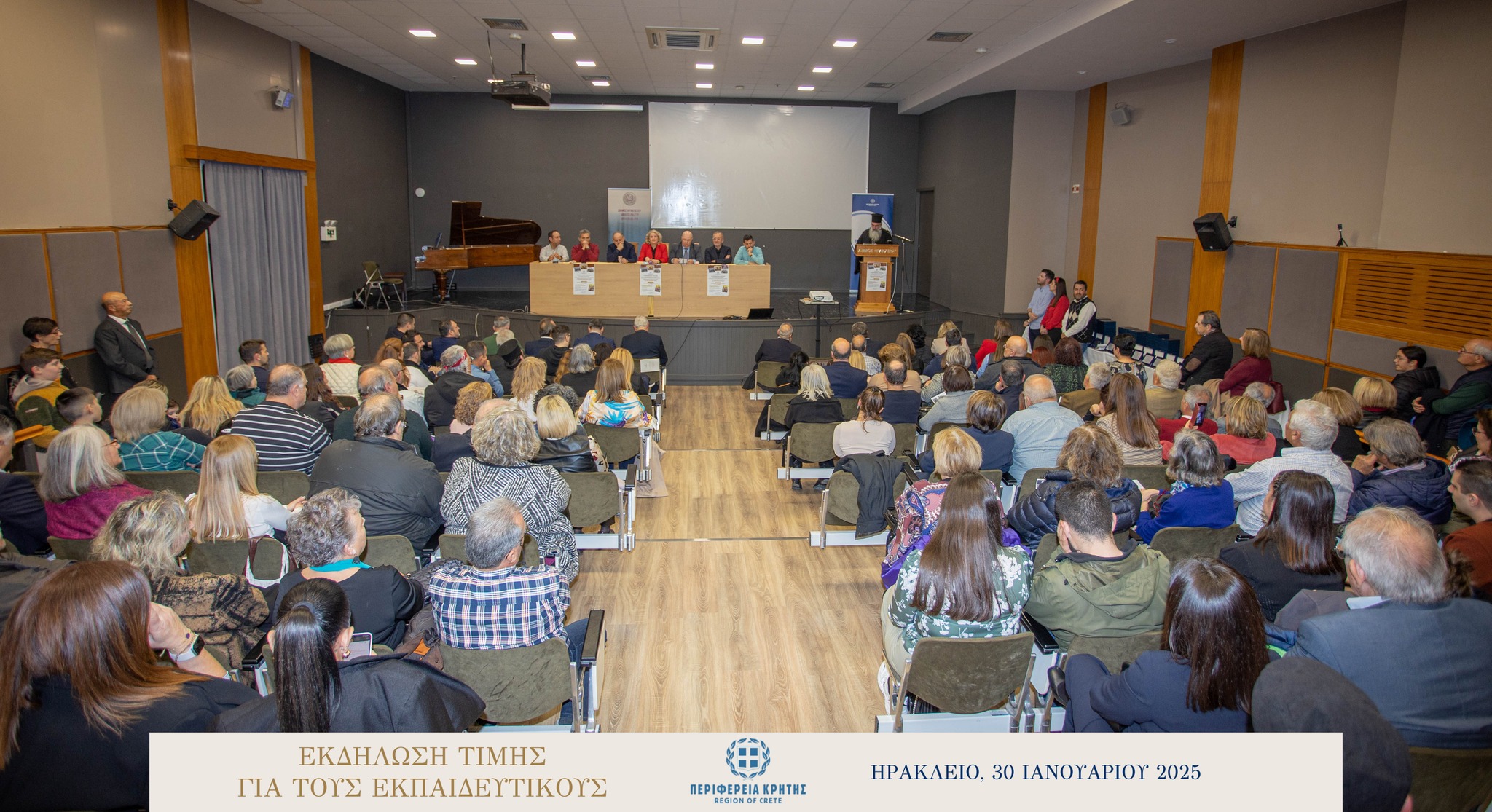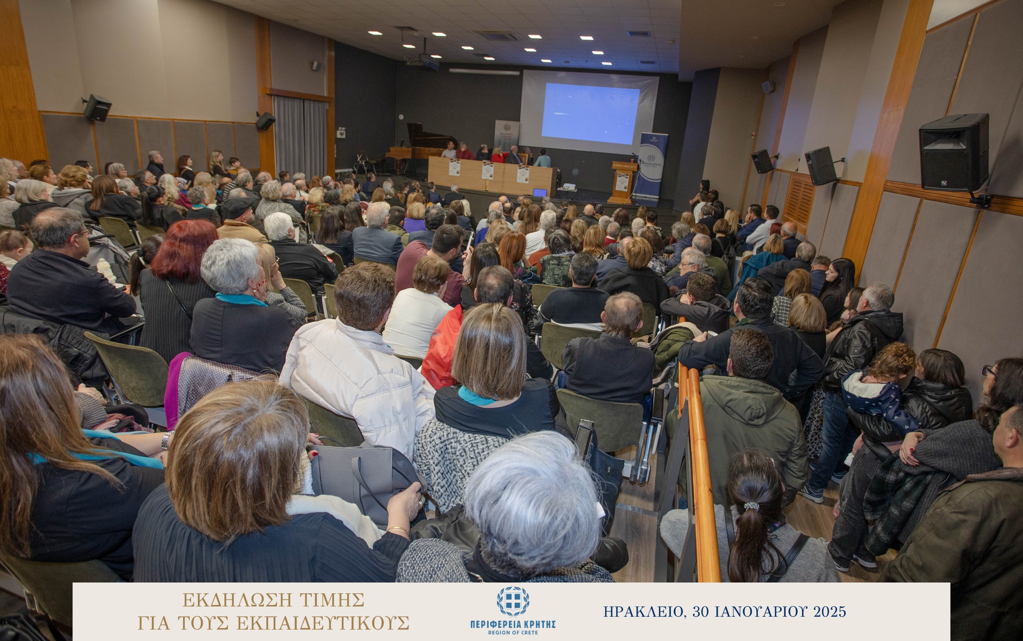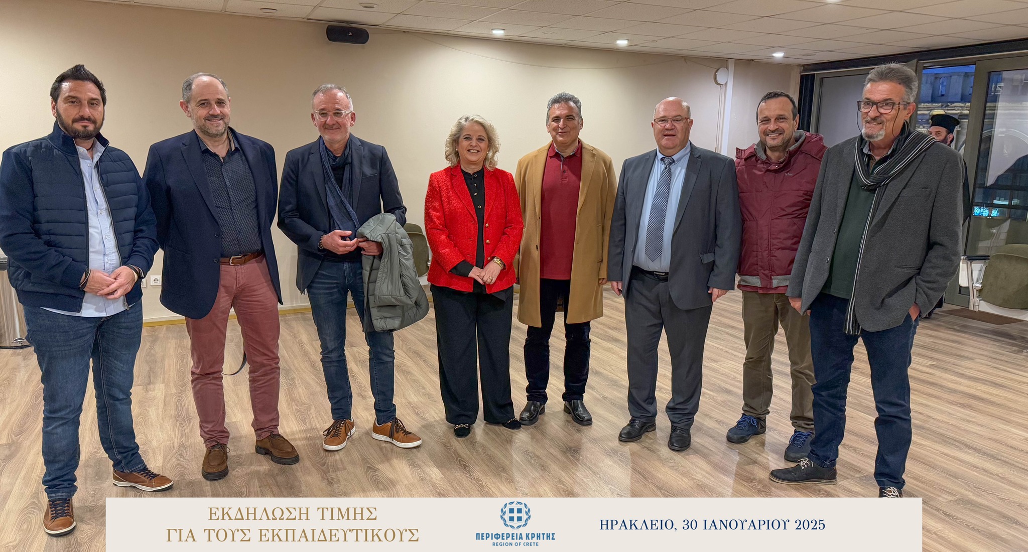 Με μεγάλη επιτυχία και σε κλίμα ιδιαίτερης χαράς και συγκίνησης πραγματοποιήθηκε την Πέμπτη 30 Ιανουαρίου 2025 στην αίθουσα «Μανώλης Καρέλλης» του Δήμου Ηρακλείου η τιμητική εκδήλωση για τους αφυπηρετήσαντες εκπαιδευτικούς των ετών 2023 και 2024 της Πρωτοβάθμιας και της Δευτεροβάθμιας εκπαίδευσης Ηρακλείου, ως ένδειξη ευγνωμοσύνης για την πολυετή προσφορά τους στην εκπαίδευση.