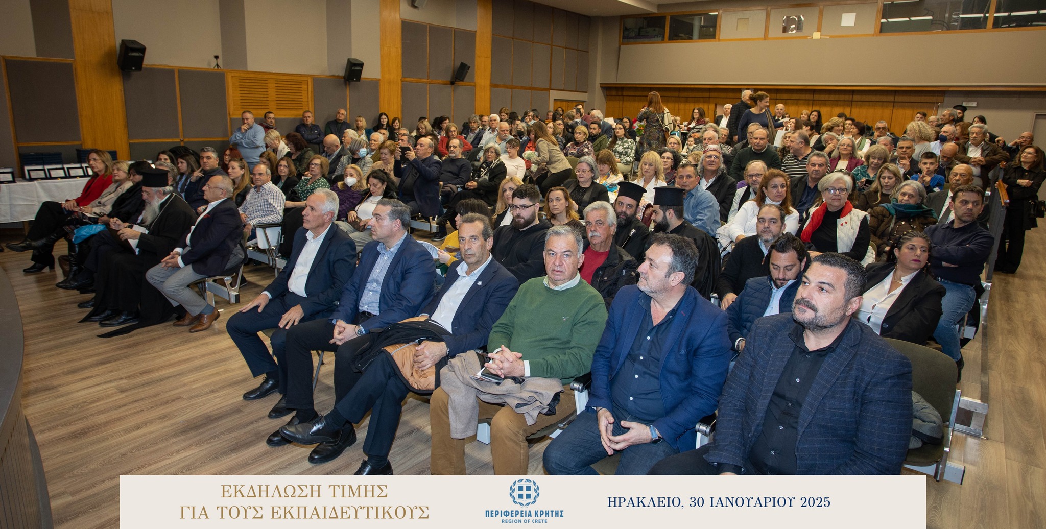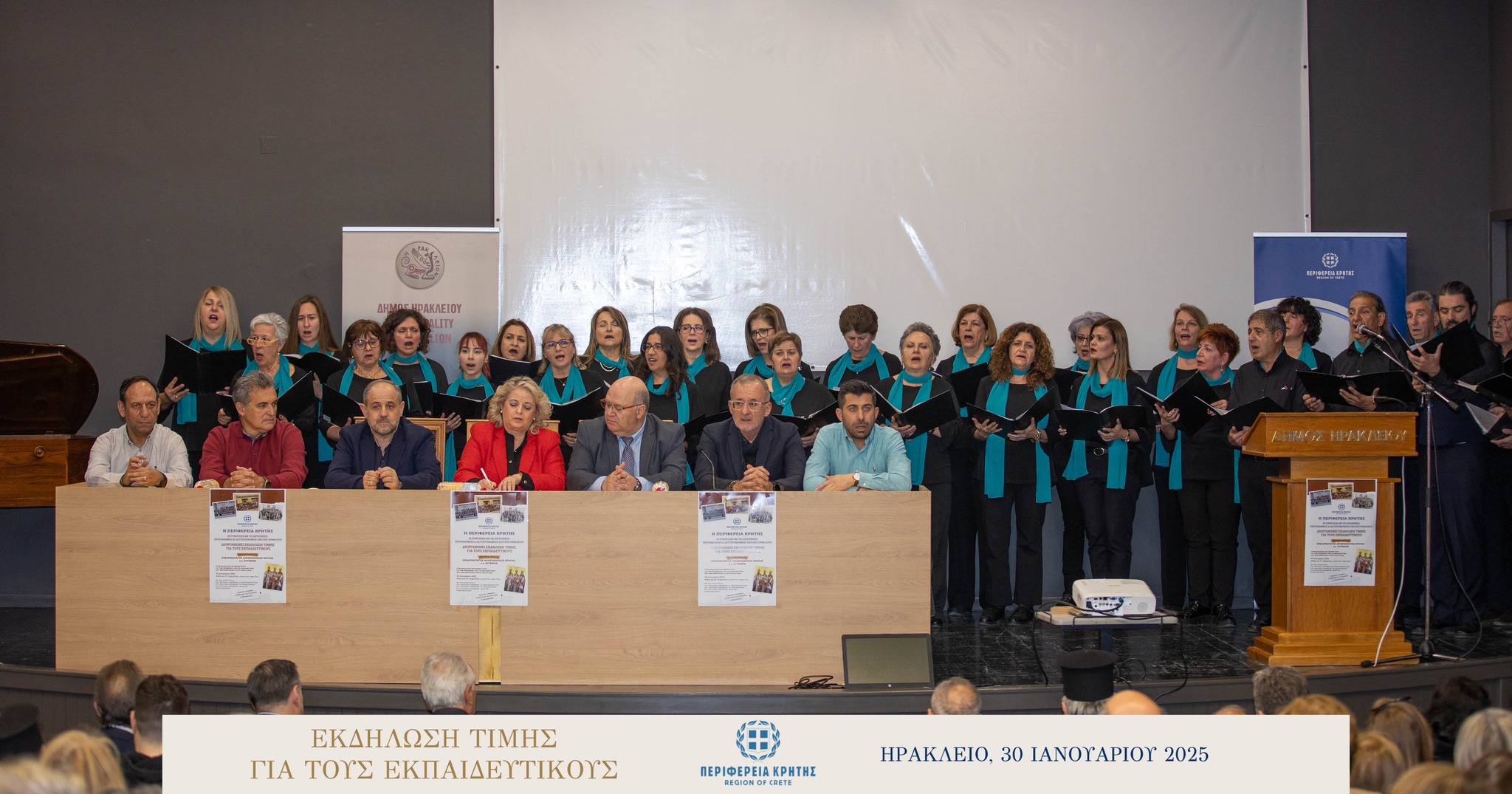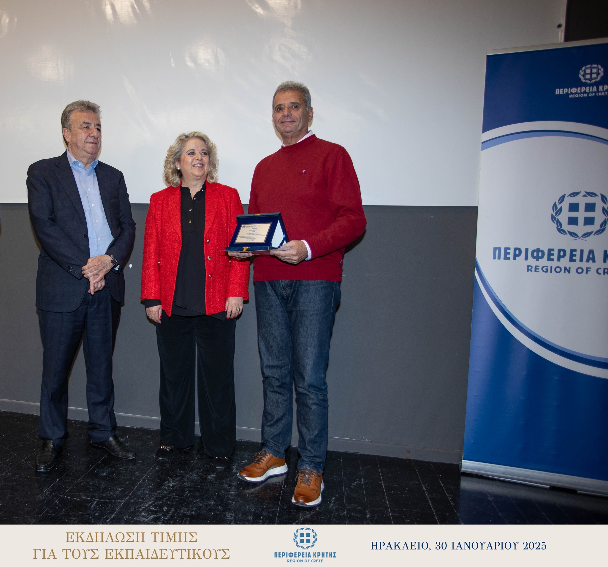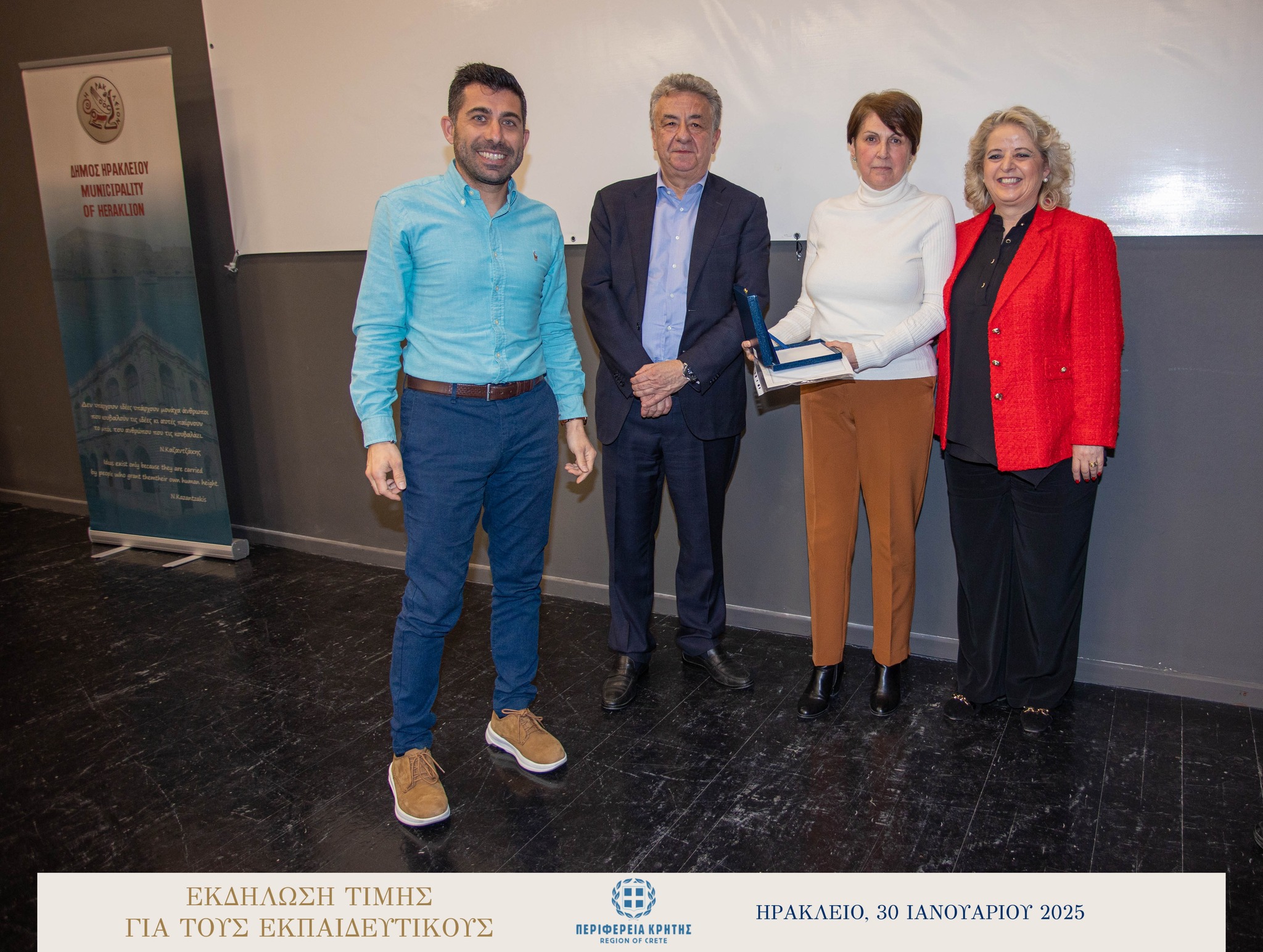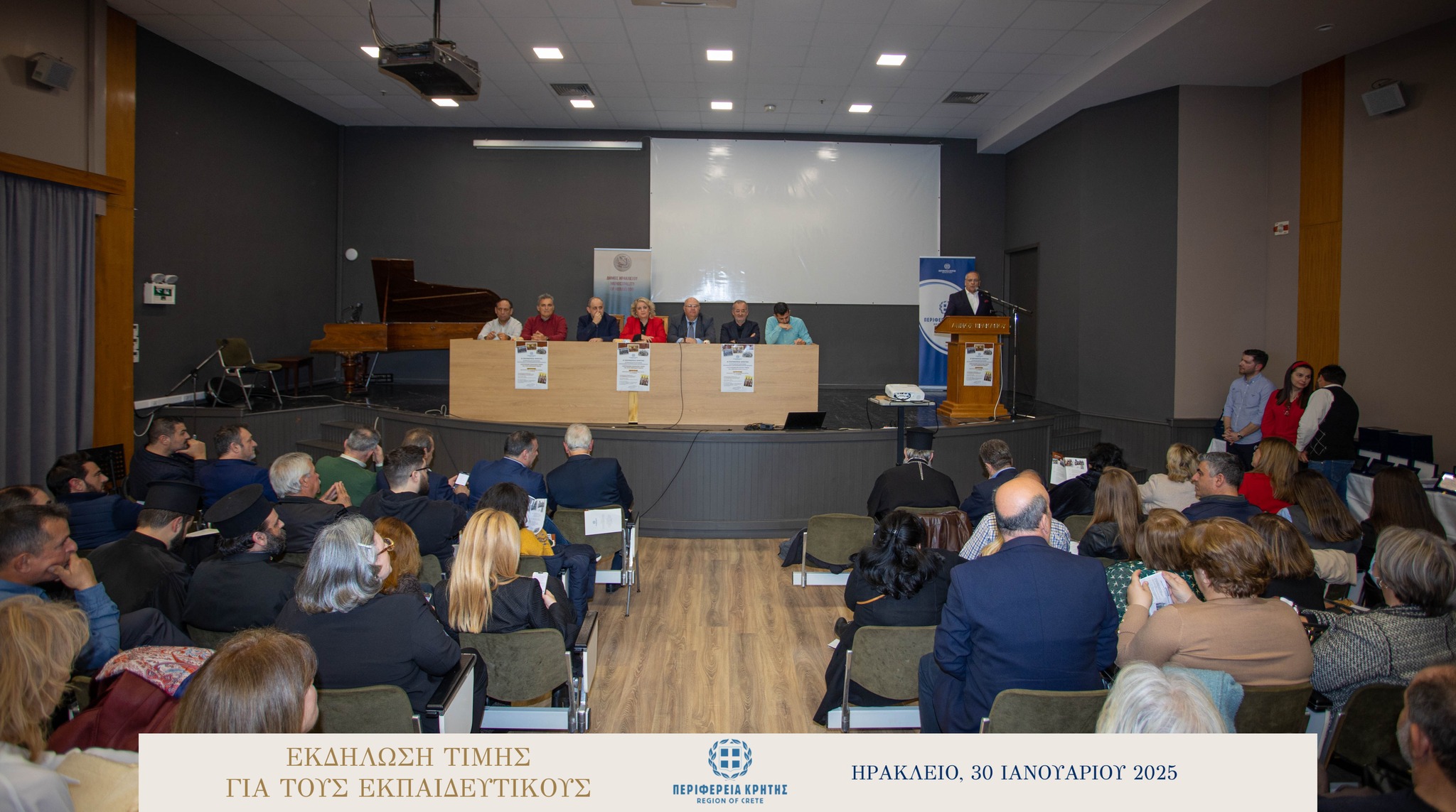 Με μεγάλη επιτυχία και σε κλίμα ιδιαίτερης χαράς και συγκίνησης πραγματοποιήθηκε την Πέμπτη 30 Ιανουαρίου 2025 στην αίθουσα «Μανώλης Καρέλλης» του Δήμου Ηρακλείου η τιμητική εκδήλωση για τους αφυπηρετήσαντες εκπαιδευτικούς των ετών 2023 και 2024 της Πρωτοβάθμιας και της Δευτεροβάθμιας εκπαίδευσης Ηρακλείου, ως ένδειξη ευγνωμοσύνης για την πολυετή προσφορά τους στην εκπαίδευση.