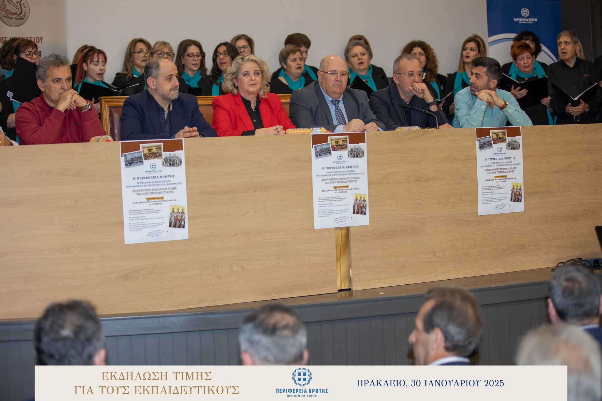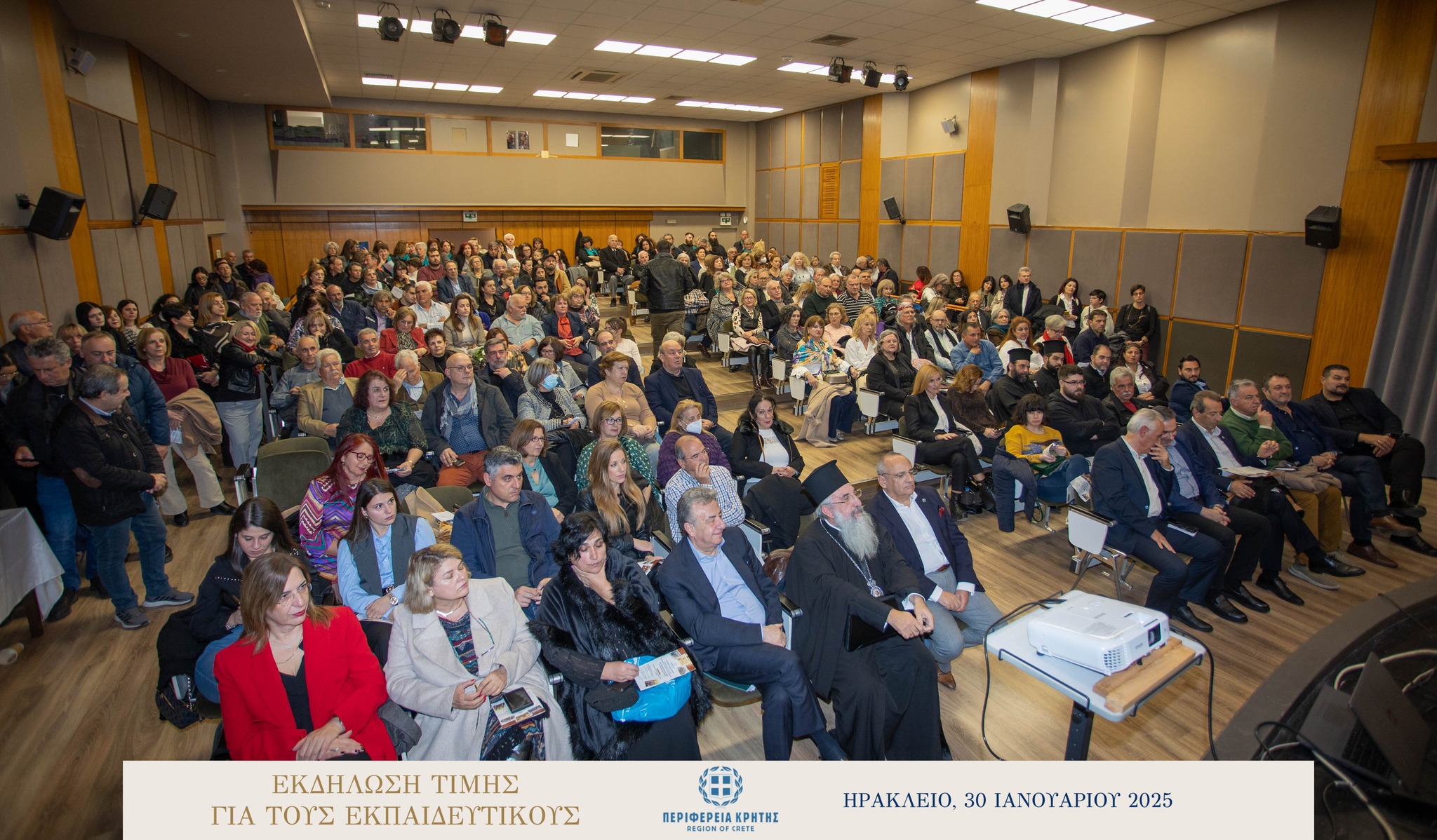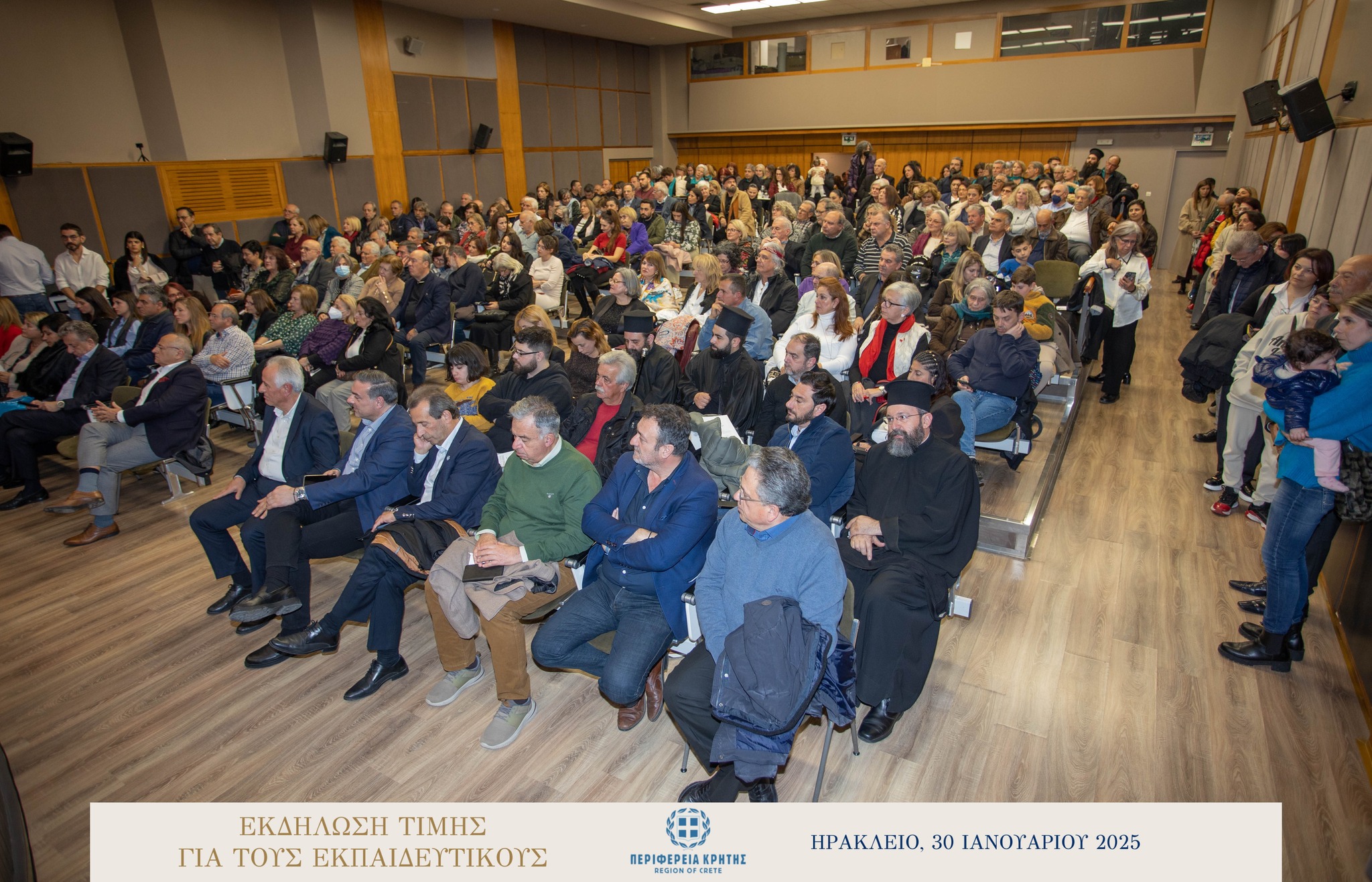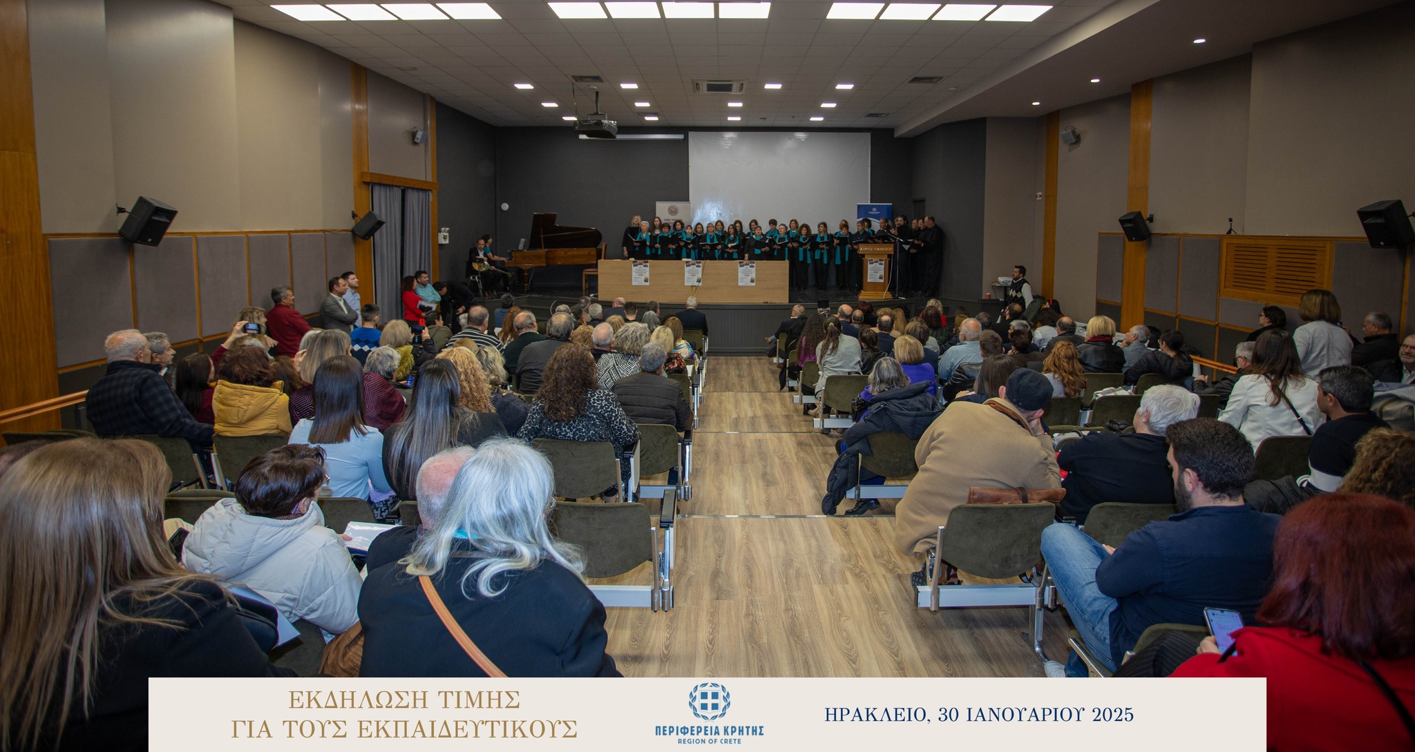 Με μεγάλη επιτυχία και σε κλίμα ιδιαίτερης χαράς και συγκίνησης πραγματοποιήθηκε την Πέμπτη 30 Ιανουαρίου 2025 στην αίθουσα «Μανώλης Καρέλλης» του Δήμου Ηρακλείου η τιμητική εκδήλωση για τους αφυπηρετήσαντες εκπαιδευτικούς των ετών 2023 και 2024 της Πρωτοβάθμιας και της Δευτεροβάθμιας εκπαίδευσης Ηρακλείου, ως ένδειξη ευγνωμοσύνης για την πολυετή προσφορά τους στην εκπαίδευση.